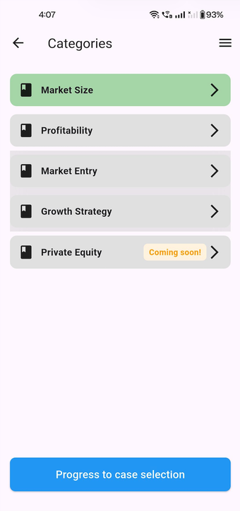 Micro-casing is a free educational app built for people preparing for consulting interviews at firms like McKinsey, BCG, and Bain, as well as MBA students and professionals in strategy or finance. It focuses on helping you strengthen your problem-solving and structured thinking skills in a practical way.